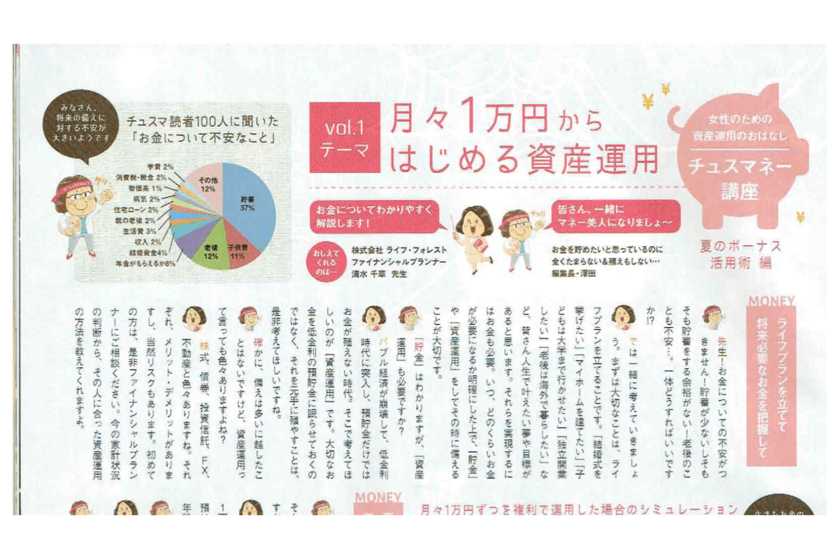「チュスマ」さんから取材を受け、7月13日発刊の「チュスマネー講座」の中で、資産運用の大切さをお話させていただきました。