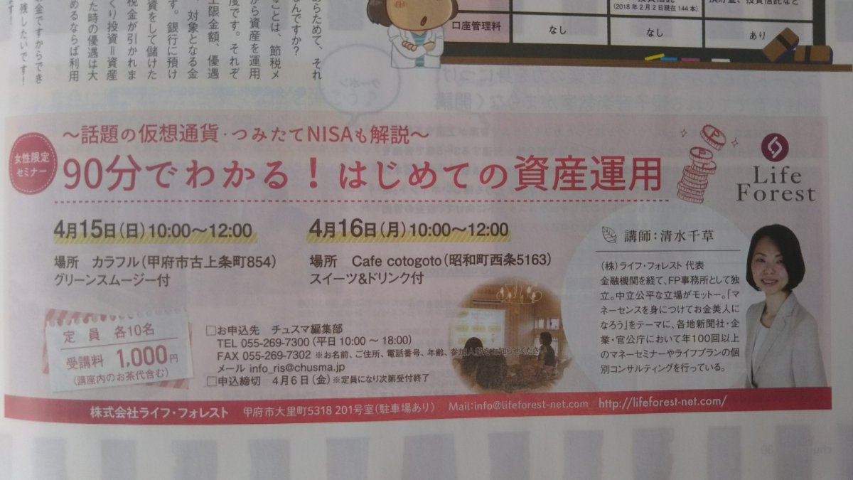 興味がある方は、チュスマさんへお申し込みください。
